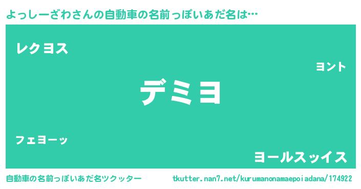 | 男性向けラノベタイトル風あだ名 | 『よっしーざわという概念が存在しない退屈な世界 』 |