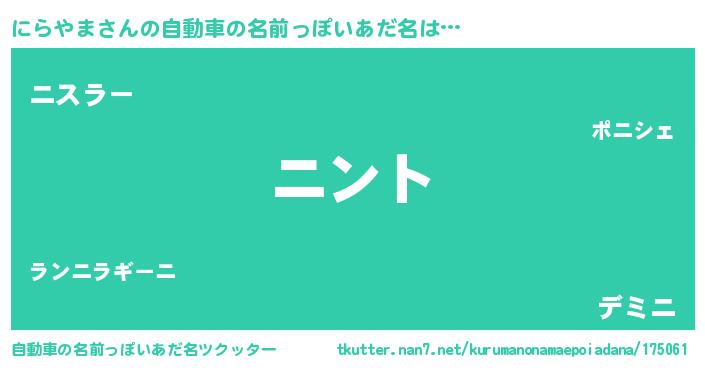 | 欧米人風あだ名 | 『ウサインにらやま』 |