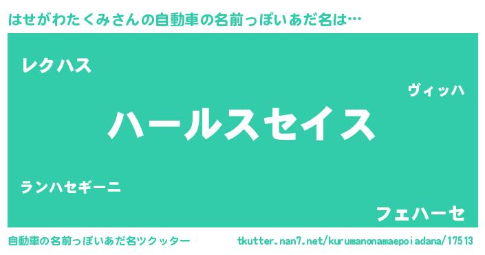 | 男性向けラノベタイトル風あだ名 | 『ハセガワタクミスレイヤー』 |