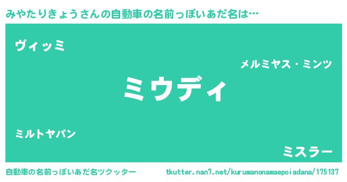 | ヒーロー風カッコイイあだ名 | 『仮面ミヤダー』『ネオミヤタリキョウ』 |