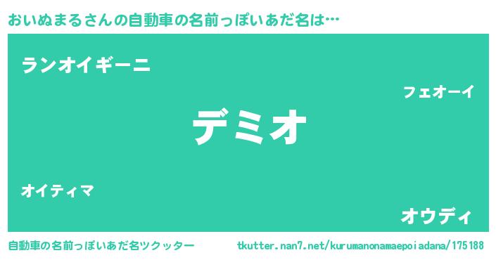 | 男性向けラノベタイトル風あだ名 | 『おいぬまるという概念が存在しない退屈な世界 』 |