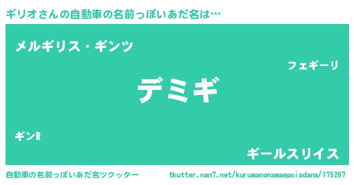 | 男性向けラノベタイトル風あだ名 | 『ギリオという概念が存在しない退屈な世界 』 |