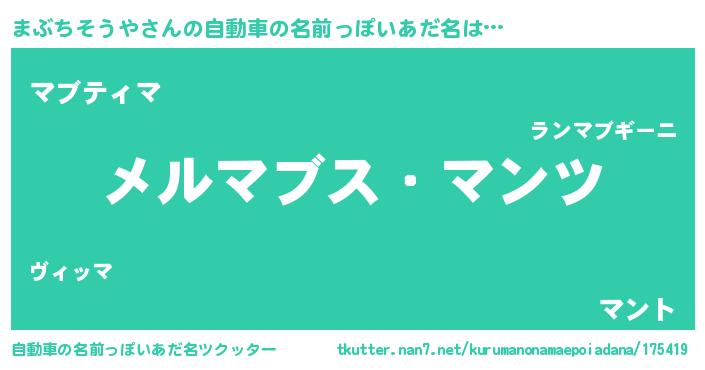 | 意味不明あだ名 | 『自称まぶちそうや』 |