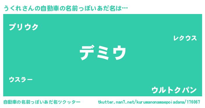 | 男性向けラノベタイトル風あだ名 | 『うくれという概念が存在しない退屈な世界 』 |