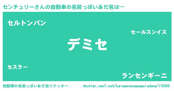 | 男性向けラノベタイトル風あだ名 | 『センチュリーという概念が存在しない退屈な世界 』 |
