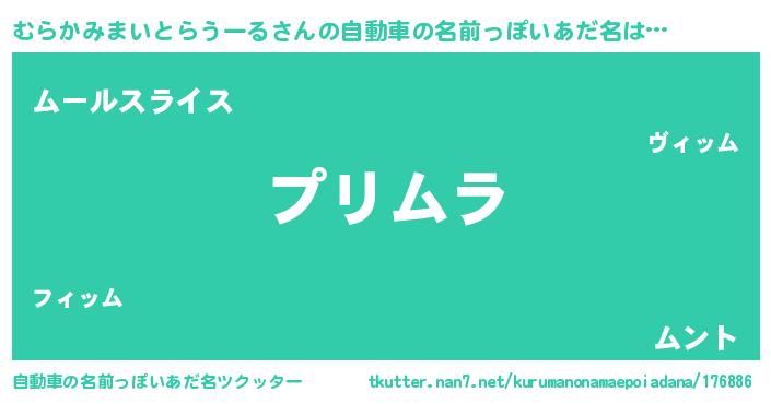 | 男性向けラノベタイトル風あだ名 | 『むらかみまいとらうーるの憂鬱』 |