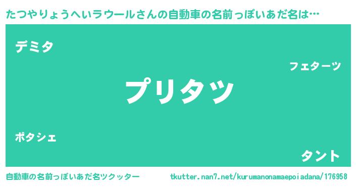 | 胡散臭い通販商品みたいなあだ名 | 『必ず成功するブレスレット…その名も「たつやりょうへいラウール」』 |