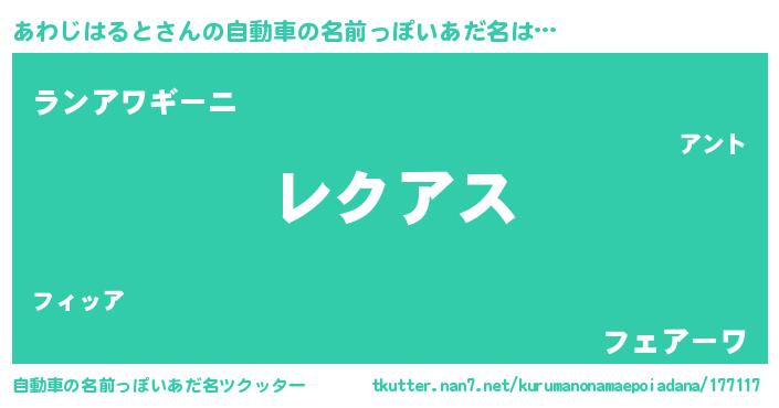あわじはるとさんの自動車の名前っぽいあだ名をツクッター!