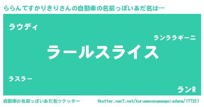 | 男性向けラノベタイトル風あだ名 | 『転生したらららんてすかりきりだった件』 |