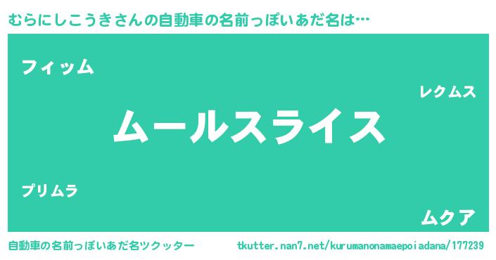 | 男性向けラノベタイトル風あだ名 | 『むらにしこうき~年齢イコール彼女いない歴の魔法使い~』 |