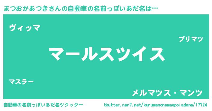 | 男性向けラノベタイトル風あだ名 | 『転生したらまつおかあつきだった件』 |
