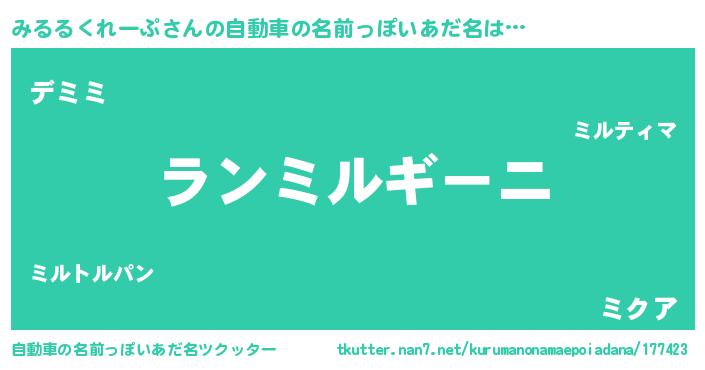 | 男性向けラノベタイトル風あだ名 | 『みるるくれーぷに滅ぼされるだけの簡単なお仕事です』 |