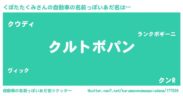 | 胡散臭い通販商品みたいなあだ名 | 『信頼と実績のサプリメント…その名も「くぼたたくみ」』 |