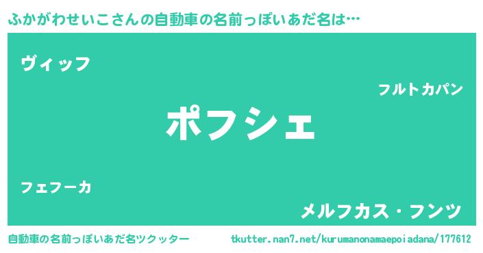 | 男性向けラノベタイトル風あだ名 | 『この素晴らしい世界にふかがわせいこを!』 |