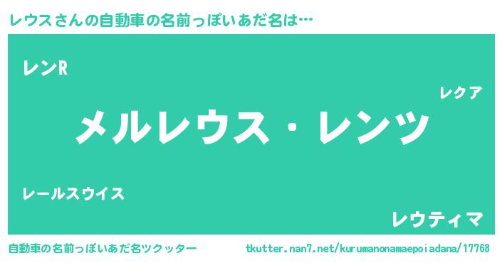 | 男性向けラノベタイトル風あだ名 | 『Re:レウスから始める異世界生活』 |