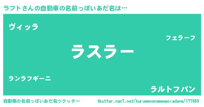 | 意味不明あだ名 | 『ラフトフォーエバー』『永久保存ラフト』 |