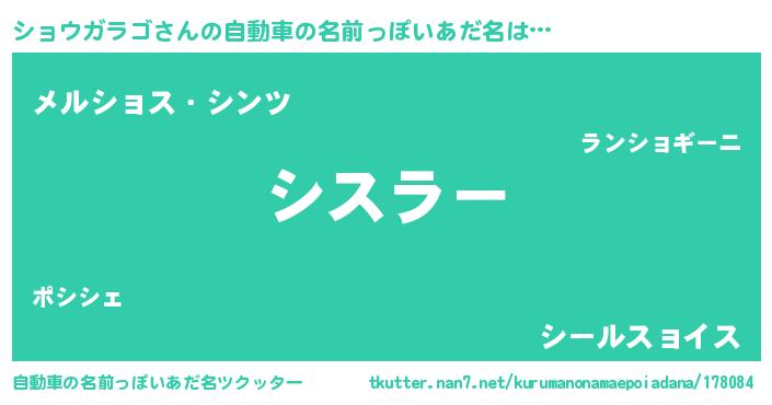 | 欧米人風あだ名 | 『ショウガラゴクリステル』 |