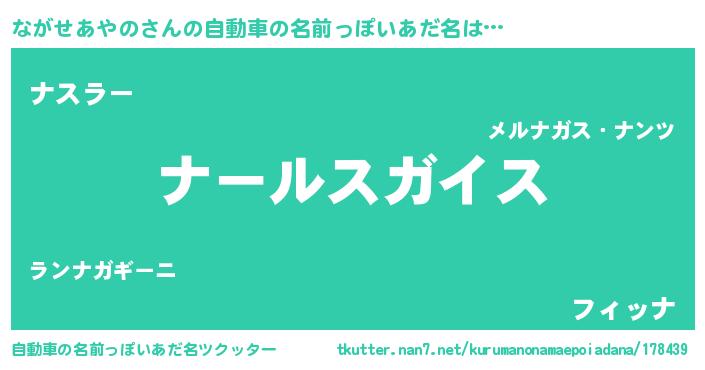 | 女子向けラノベタイトル風あだ名 | 『ながせあやのの玉の輿計画!』 |
