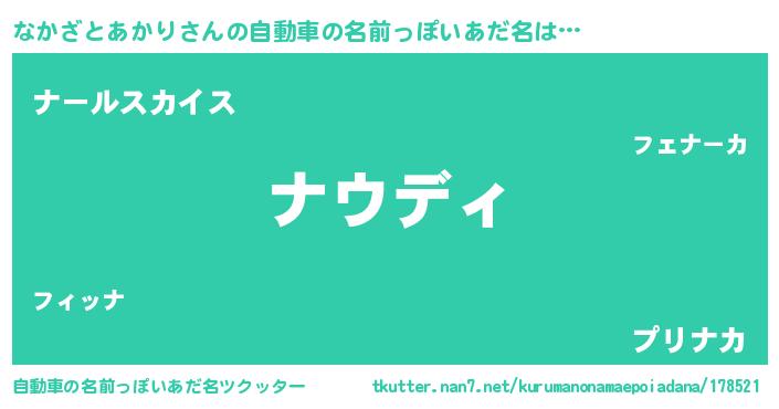 | 男性向けラノベタイトル風あだ名 | 『魔弾の王となかざとあかり』 |