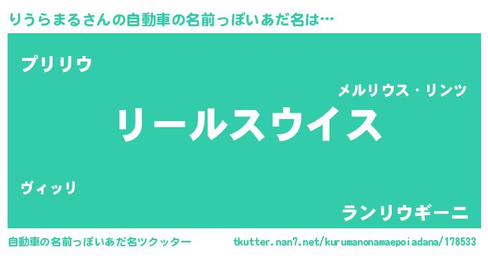 | 女子向けラノベタイトル風あだ名 | 『りうらまるの玉の輿計画!』 |