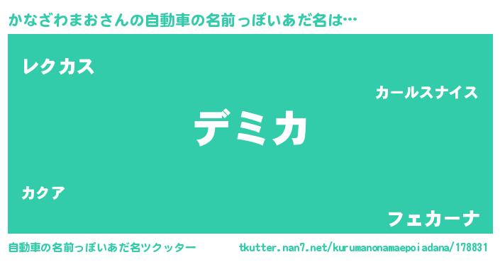 | 女子向けラノベタイトル風あだ名 | 『かなざわまおの契約王妃』 |
