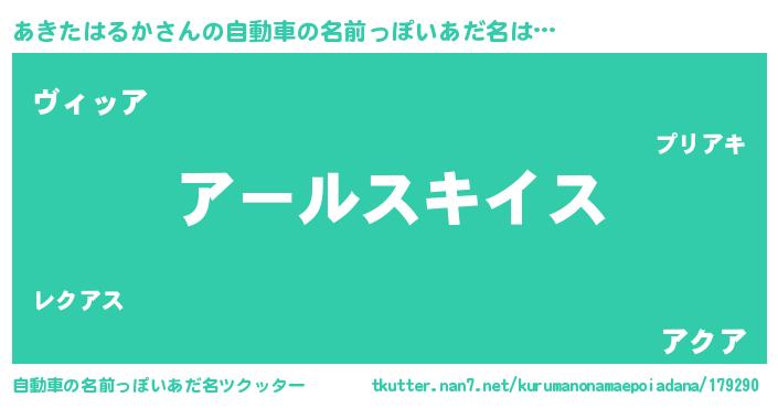 | 胡散臭い通販商品みたいなあだ名 | 『来世でも幸せになれる水素水…その名も「あきたはるか」』 |