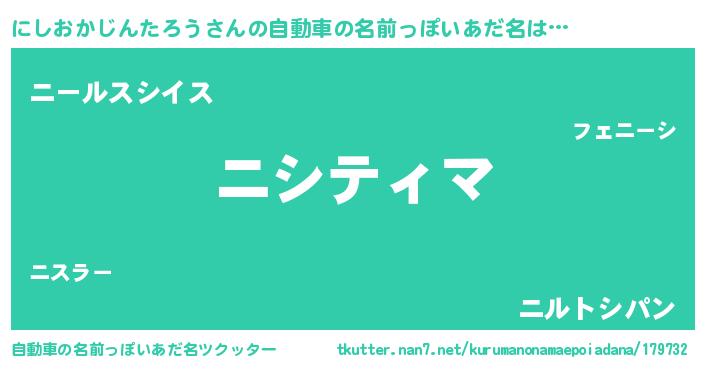 | 男性向けラノベタイトル風あだ名 | 『ニシオカジンタロウアートオンライン』 |