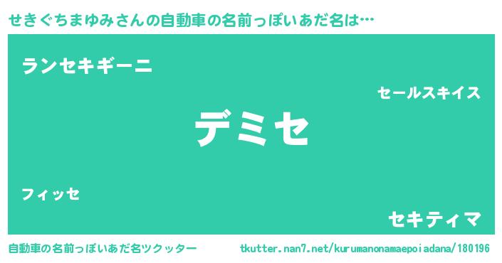 | 胡散臭い通販商品みたいなあだ名 | 『絶対に幸福をもたらす健康食品…その名も「せきぐちまゆみ」』 |