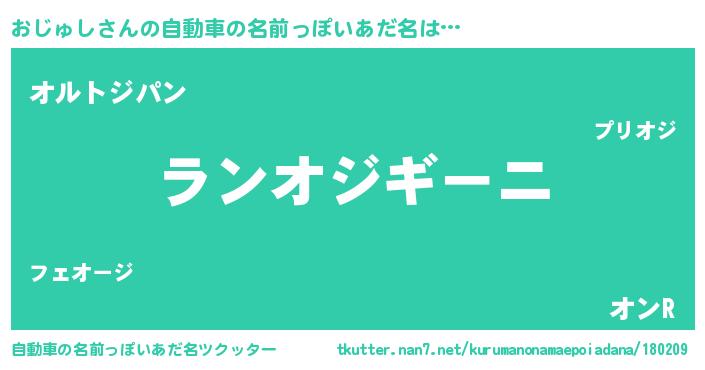 おじゅしさんの自動車の名前っぽいあだ名をツクッター!
