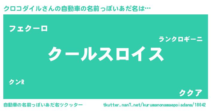 | 女子向けラノベタイトル風あだ名 | 『クロコダイルの玉の輿計画!』 |
