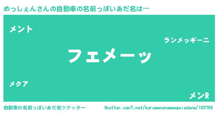 | 男性向けラノベタイトル風あだ名 | 『うちのめっしぇんが世界を掌握している!』 |