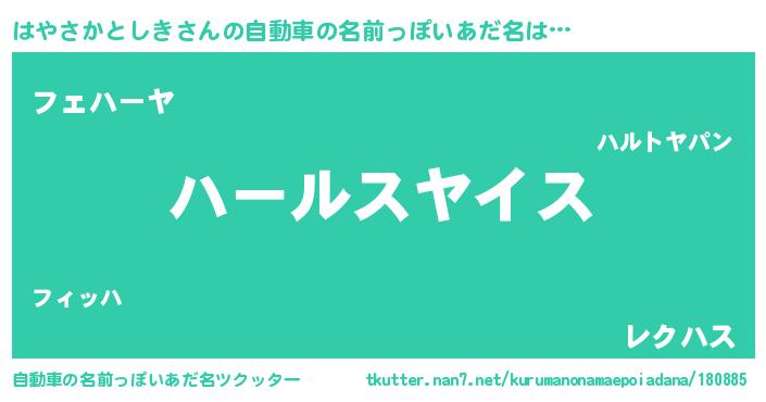 | 男性向けラノベタイトル風あだ名 | 『転生したらはやさかとしきだった件』 |
