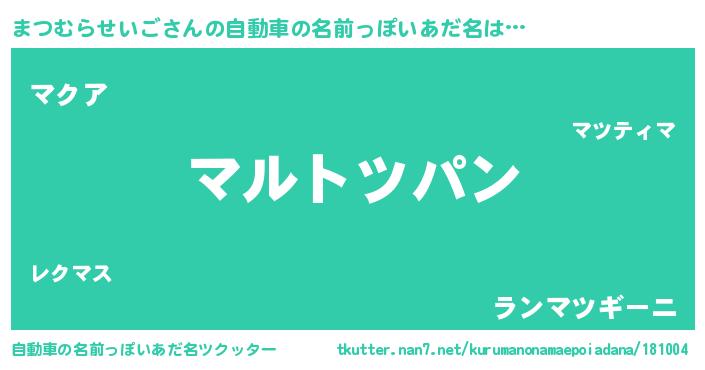 | 意味不明あだ名 | 『とにかく怪しいまつむらせいご』 |