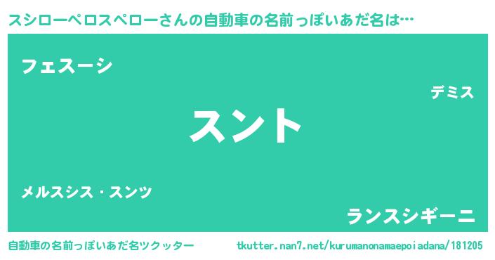 | 男性向けラノベタイトル風あだ名 | 『スシローペロスペローの嫁は女の子じゃないと思った?』 |