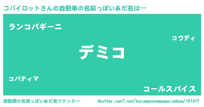 | 胡散臭い通販商品みたいなあだ名 | 『絶対に幸福をもたらす水素水…その名も「コパイロット」』 |