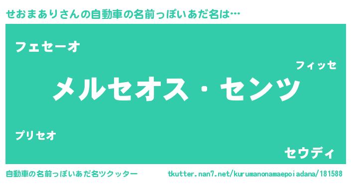 | 男性向けラノベタイトル風あだ名 | 『Re:せおまありから始める異世界生活』 |