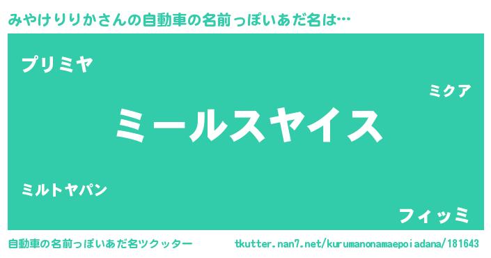 | 男性向けラノベタイトル風あだ名 | 『転生したらみやけりりかだった件』 |