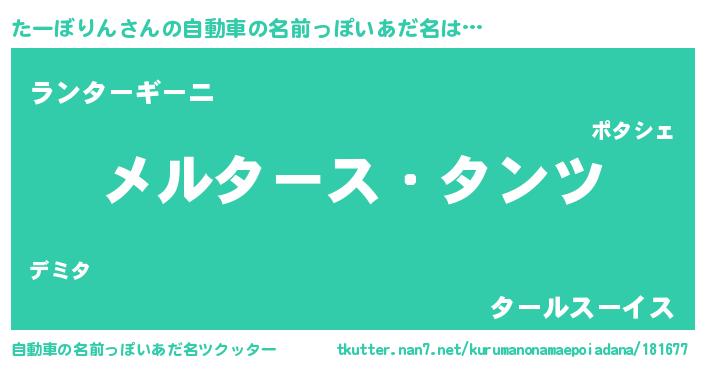 | 女子向けラノベタイトル風あだ名 | 『たーぼりんストレイドッグス』 |