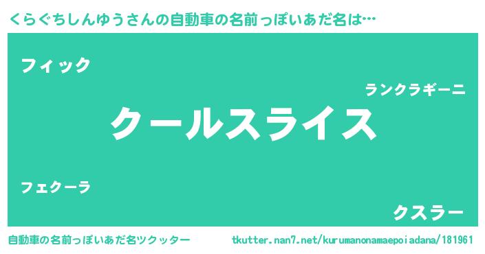 | 男性向けラノベタイトル風あだ名 | 『クラグチシンユウスレイヤー』 |