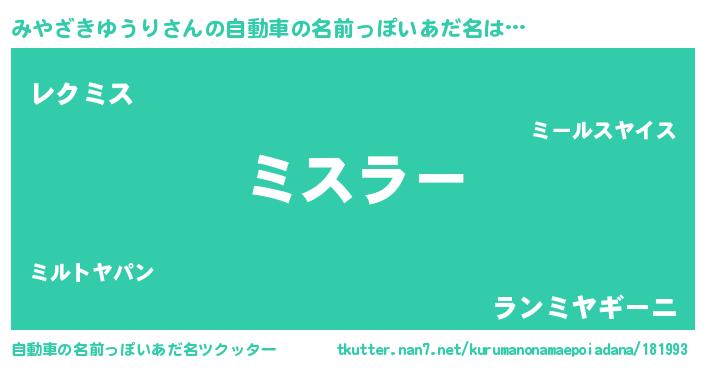 | ファンタジー風あだ名 | 『エターナルミヤザキユウリー』 |