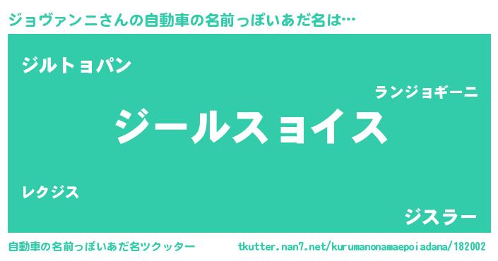 | 女子向けラノベタイトル風あだ名 | 『ジョヴァンニの玉の輿計画!』 |