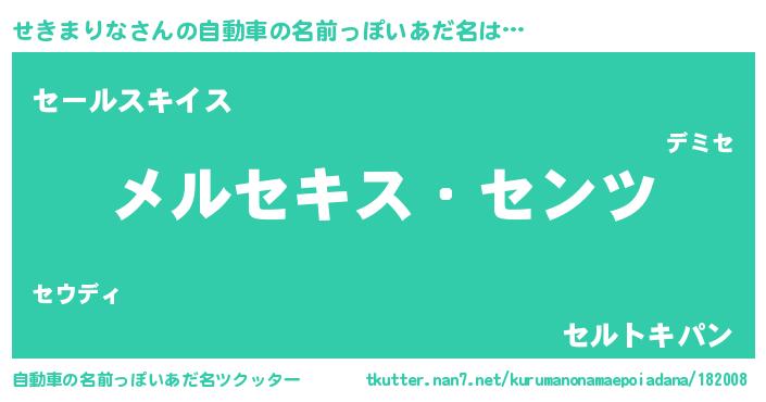 | 男性向けラノベタイトル風あだ名 | 『Re:せきまりなから始める異世界生活』 |