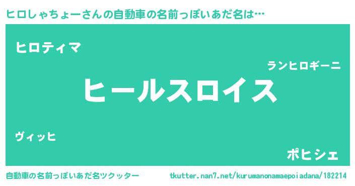 | 男性向けラノベタイトル風あだ名 | 『ヒロシャチョースレイヤー』 |