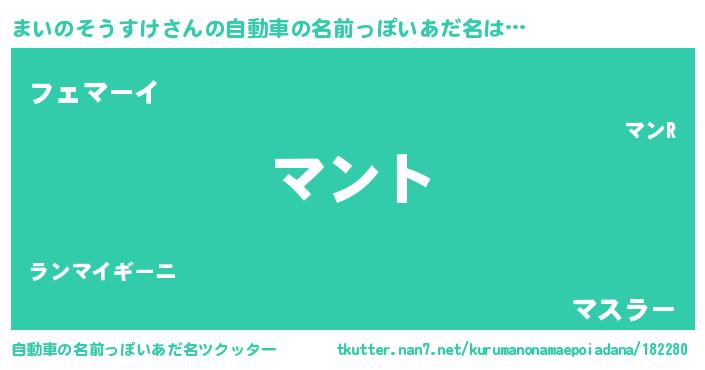 | 男性向けラノベタイトル風あだ名 | 『まいのそうすけの嫁は女の子じゃないと思った?』 |