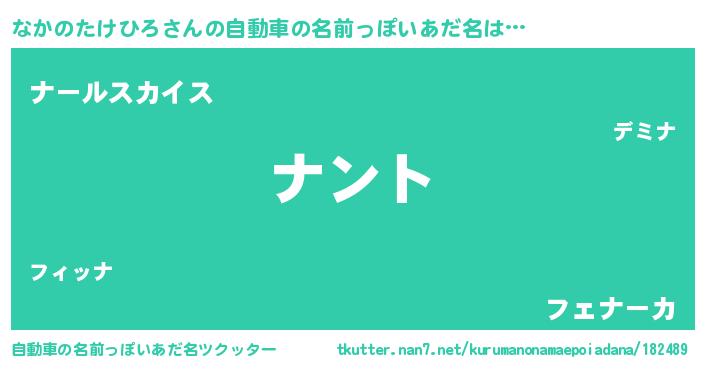 | 男性向けラノベタイトル風あだ名 | 『なかのたけひろの嫁は女の子じゃないと思った?』 |
