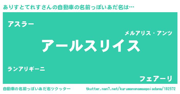 | 男性向けラノベタイトル風あだ名 | 『転生したらありすとてれすだった件』 |