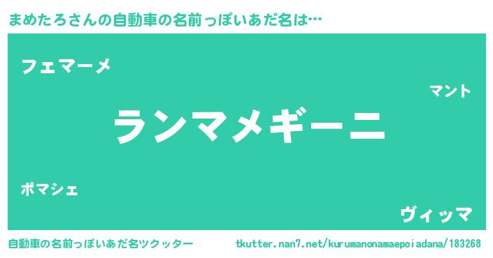 | 胡散臭い通販商品みたいなあだ名 | 『絶対に幸福をもたらす健康食品…その名も「まめたろ」』 |