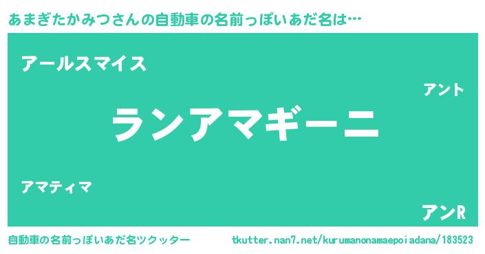 | 欧米人風あだ名 | 『アンジェラ・あまぎたかみつ』 |