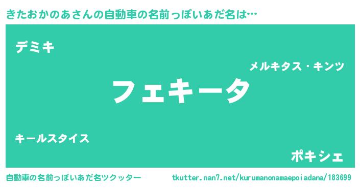 きたおかのあさんの自動車の名前っぽいあだ名をツクッター!