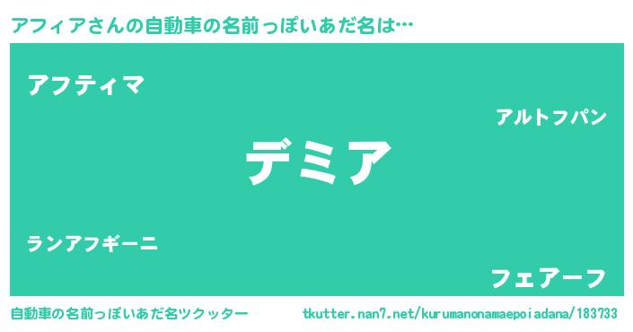 | ファンタジー風あだ名 | 『アフディッシュ』『アフフェル』 |